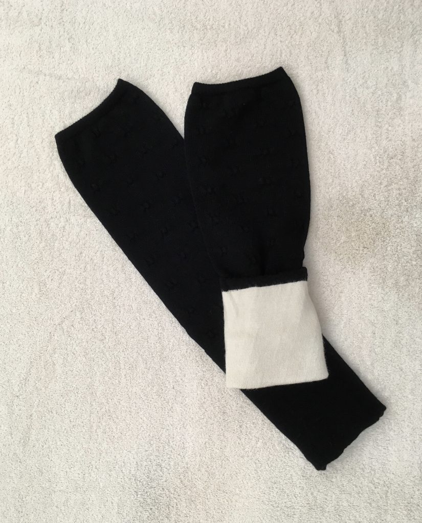 冷え性(温活)対策で、山忠(温むすび)のレッグウォーマーを購入。