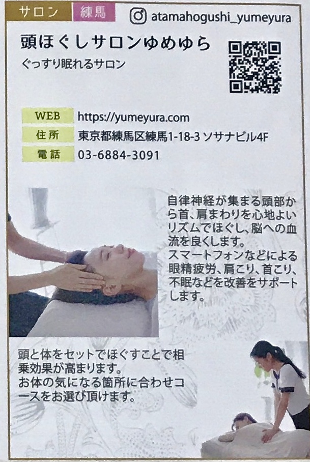 練馬区のヘッドマッサージ専門店 頭ほぐしサロンゆめゆらです。